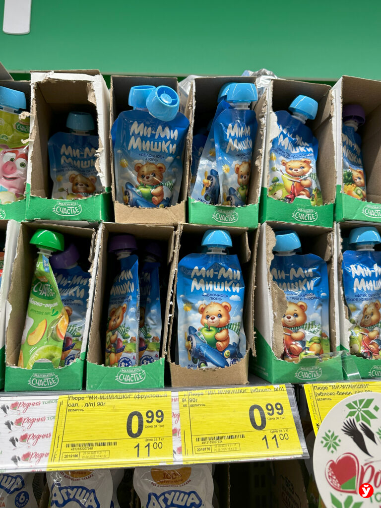 Для самых маленьких покупателей есть детские пюрешки с разными вкусами — всего 99 копеек за упаковку (90 грамм).