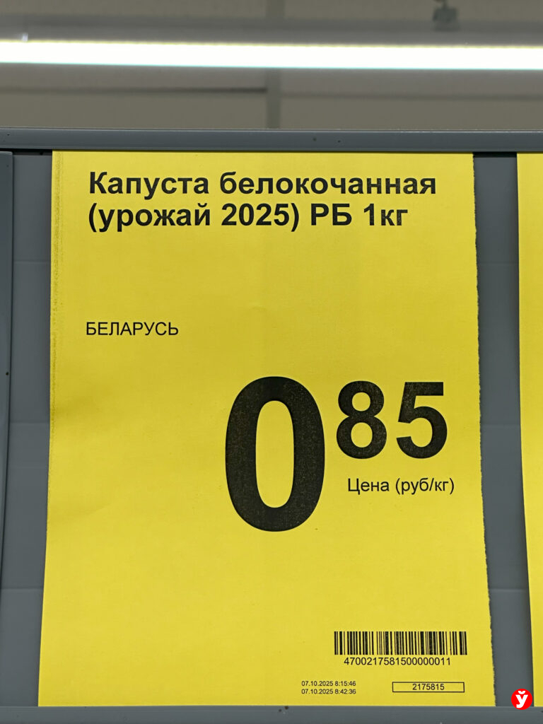 Белокочанная капуста урожая 2025 года продается по 85 копеек за килограмм.