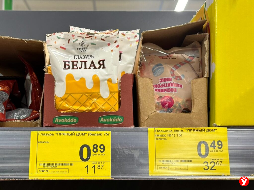 В отделе приправ нашли белую глазурь — упаковка 75 грамм стоит 89 копеек. А вот разноцветная кондитерская посыпка весом 15 грамм обойдется всего в 49 копеек — для тех, кто любит украшать десерты.