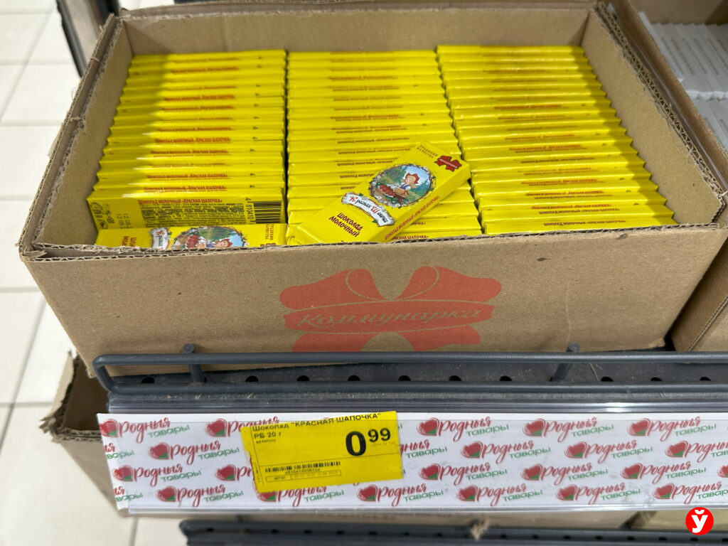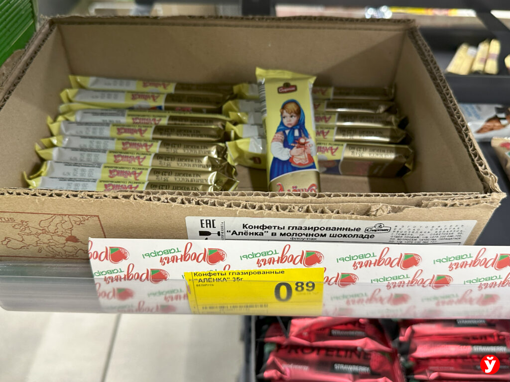 Оплачивая покупки, у кассы собралось много сладких соблазнов. Но есть и бюджетные! Например, маленькие шоколадки по 20 грамм стоят 99 копеек, конфеты по 35 грамм — 89 копеек.