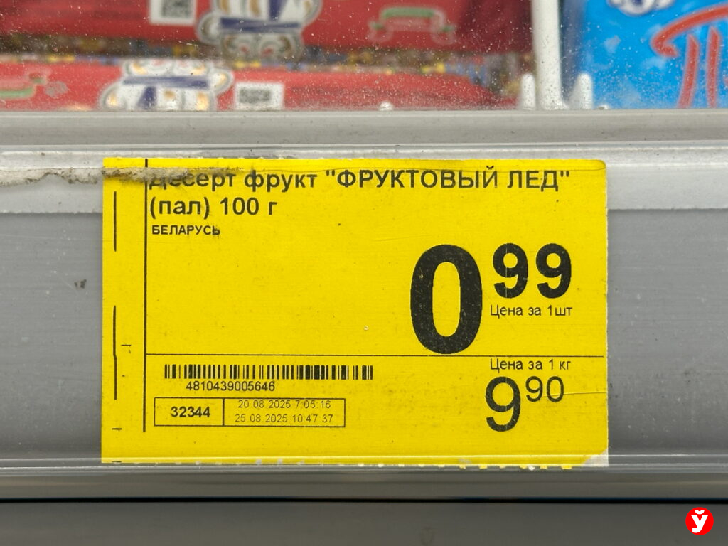 Самым неожиданным открытием стало мороженое до рубля! В продаже — фруктовый лед весом 100 грамм по цене 99 копеек.