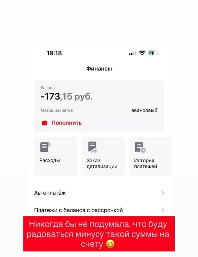 Комментируя результат, девушка иронично отметила, что «никогда бы не подумала, что будет радоваться минусу такой суммы на счёте».