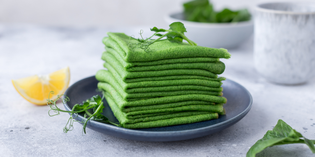 Шпинат дает блинам не только интенсивный цвет, но и мягкий, нейтральный вкус, делая основу универсальной для сладких или сырных начинок.