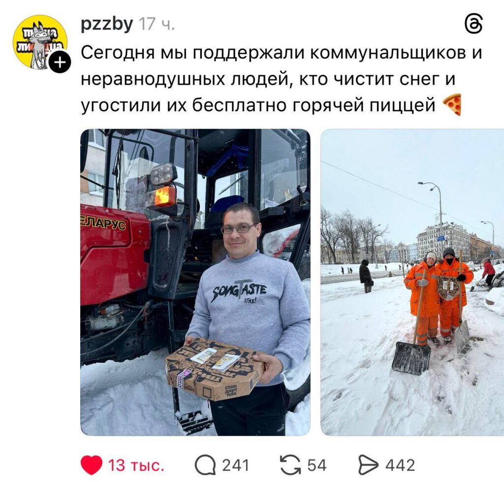 Нашлись и те, кто бесплатно угощал работников пиццей.