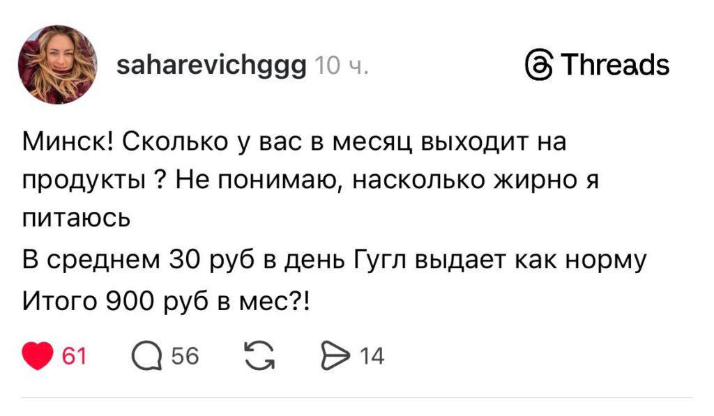 В структуре потребительских расходов белорусов львиную долю занимают траты на продукты питания. Неудивительно, что именно эта тема в очередной раз стала самой обсуждаемой в Threads.