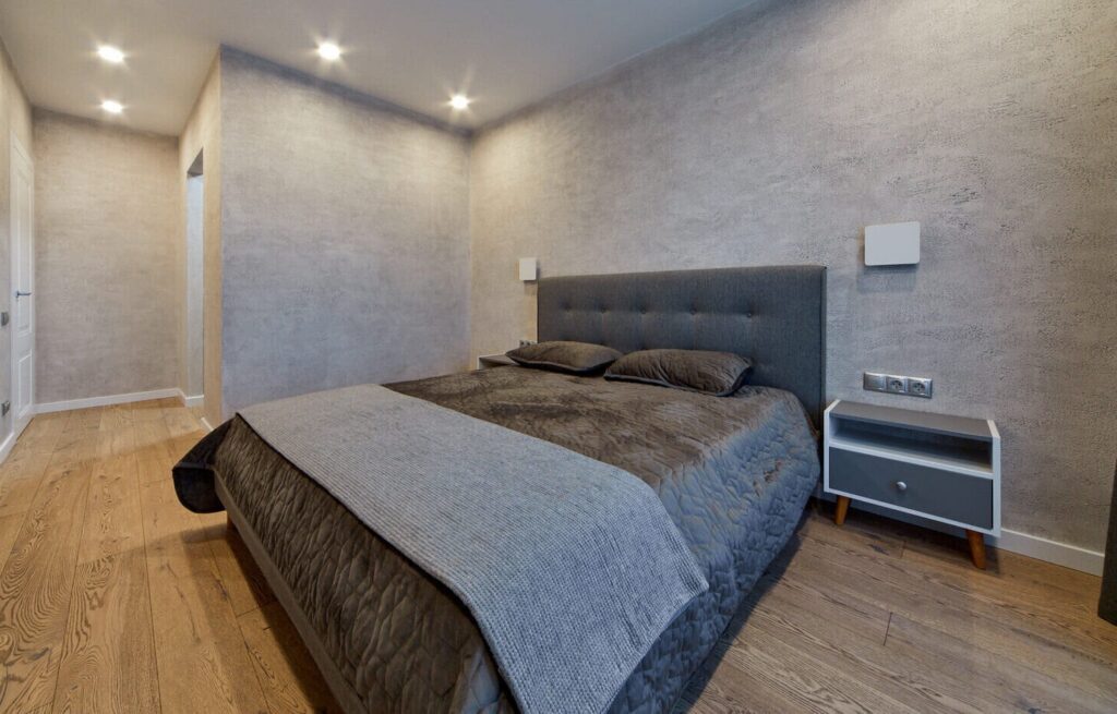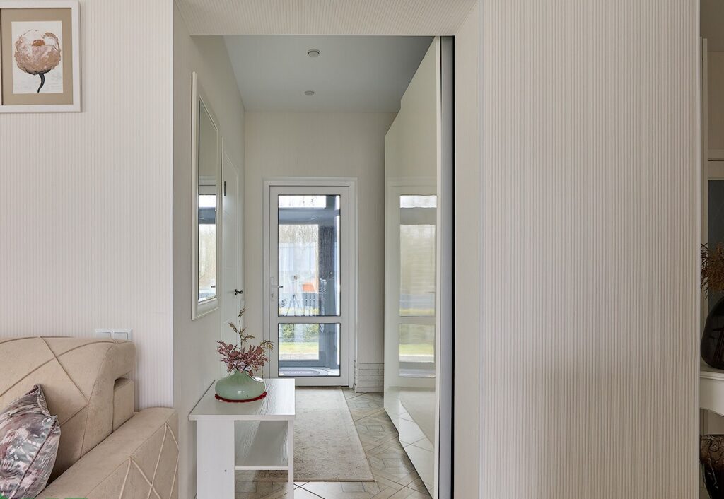 Кроме того, в доме предусмотрены две отдельные комнаты, которые могут служить полноценными спальнями. В этих изолированных помещениях установлены кровати и шкафы. В прихожей предусмотрены дополнительные зоны для хранения вещей.
