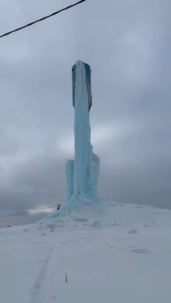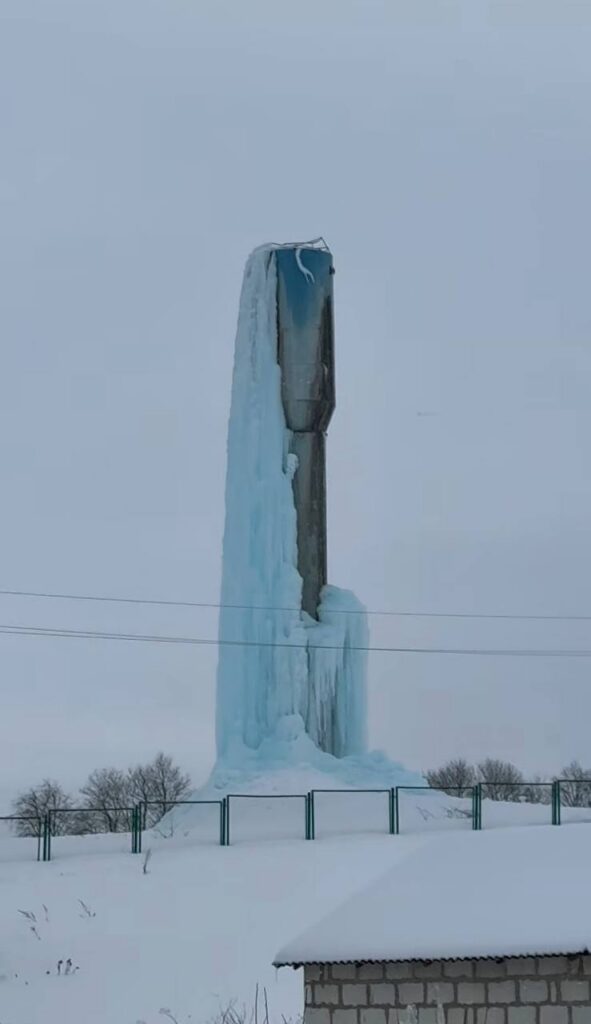К слову, водонапорная башня покрывается льдом при неисправности конструкции. Явление эффектное, но опасное: это может привести к повреждению объекта, нарушению водоснабжения, деформации стенок башни и даже ее возможному обрушению.