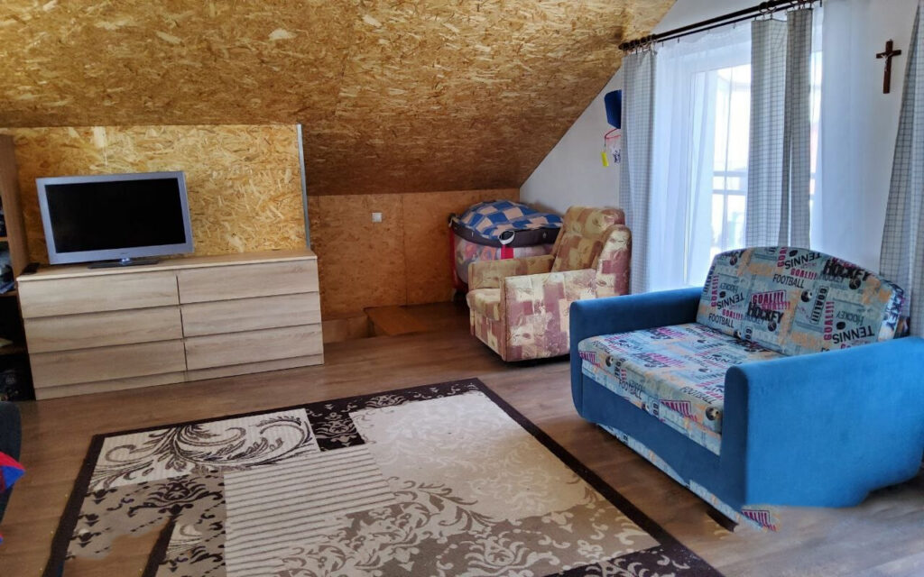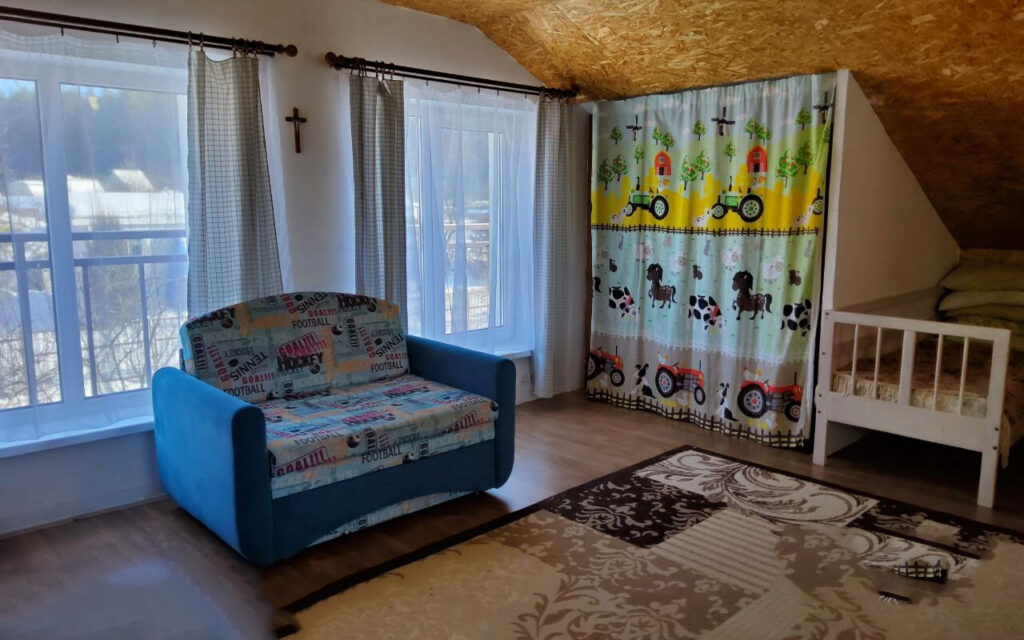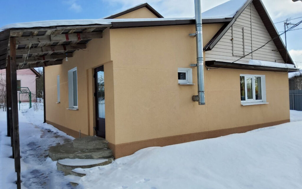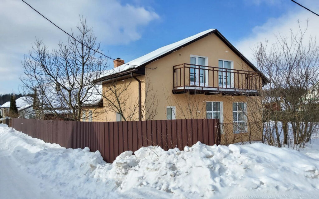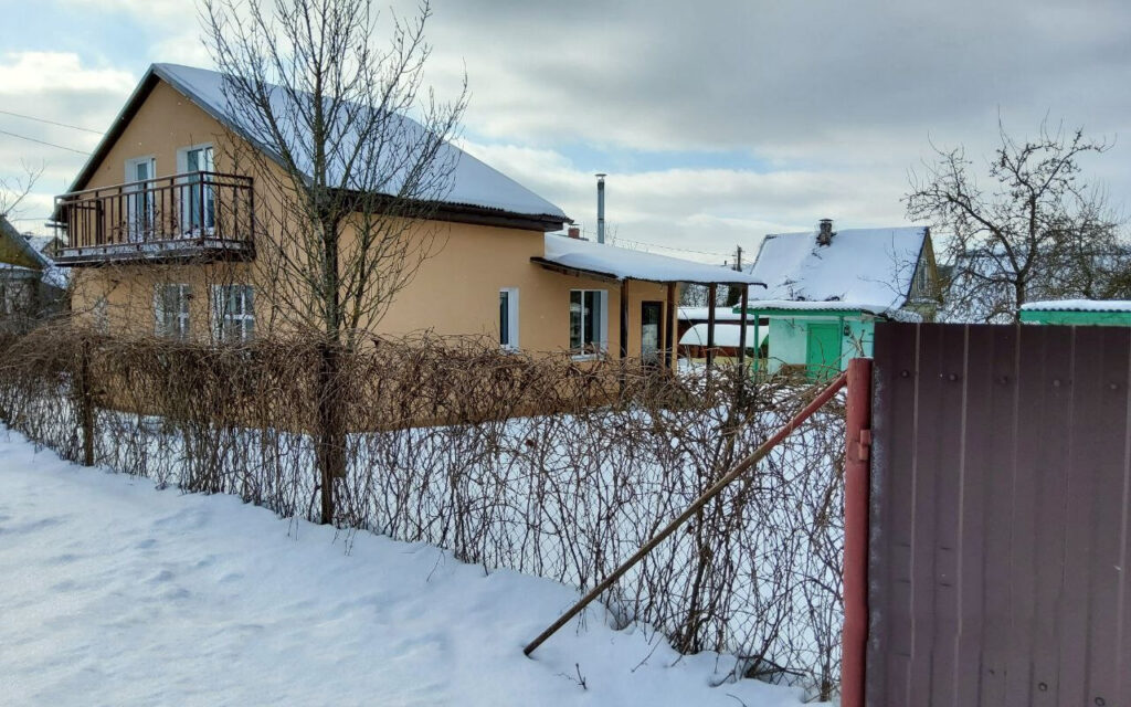 Дача расположена в садовом товариществе «Узборье», в Минском районе, всего в 16 километрах от МКАД, в направлении Логойска. Дом состоит из двух частей: двухэтажный коттедж, построенный из газосиликатных блоков, был пристроен к одноэтажному деревянному дому, который был построен еще в 1982 году. Снаружи вся объединенная постройка утеплена, а ее фасад аккуратно окрашен, что придает дому ухоженный и привлекательный вид.