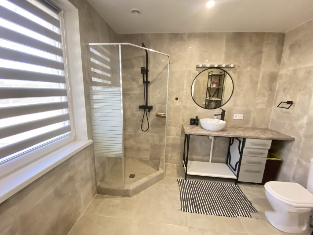 Отдельно стоит отметить, что в доме выделено помещение под топочную, а отопление осуществляется с помощью электричества. Водоснабжение обеспечивается за счет скважины, а канализация подключена к местной системе.
