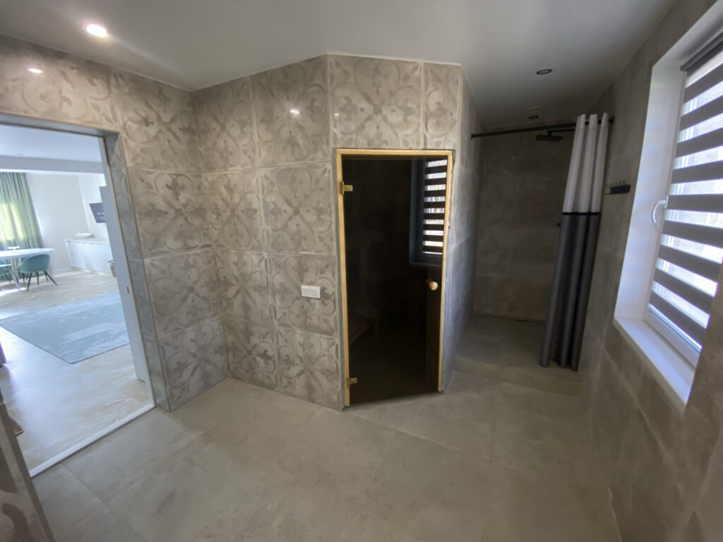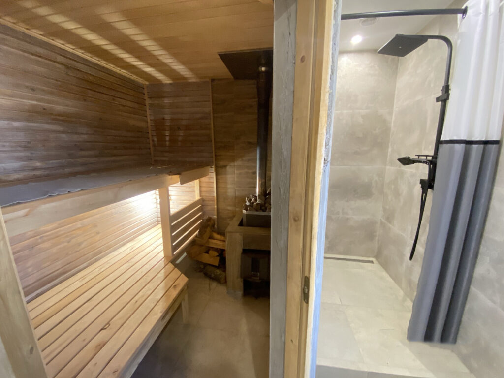 Планировка дома продумана до мелочей. Просторная кухня с обустроенной столовой идеально подходит для семейных ужинов, а рядом расположена светлая гостиная, из которой можно пройти в две изолированные спальни. Кроме того, в доме предусмотрена сауна на дровах. В ванной комнате установлены два душа, а сам санузел отличается достаточной площадью для удобства.