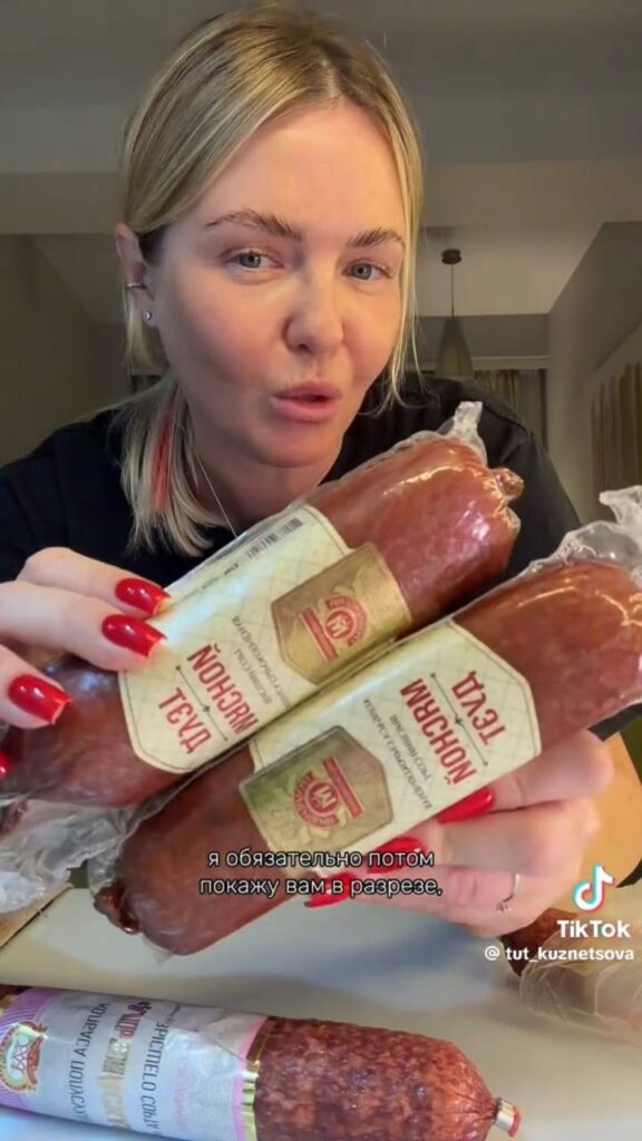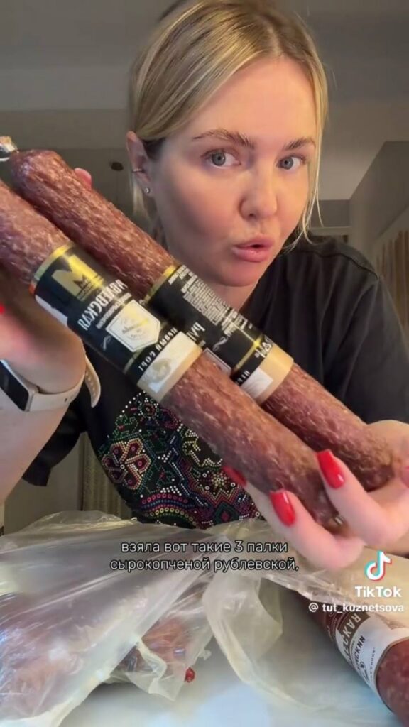 Первым делом Татьяна Колбасовна, как она сама себя называет в шутку, не могла обойтись без колбаски. И это не удивительно! Она привезла три палки сырокопченой колбасы «Рублевская», которые стоили всего 20 рублей за килограмм. Для сравнения, в России такие деликатесы стоят в разы дороже.
