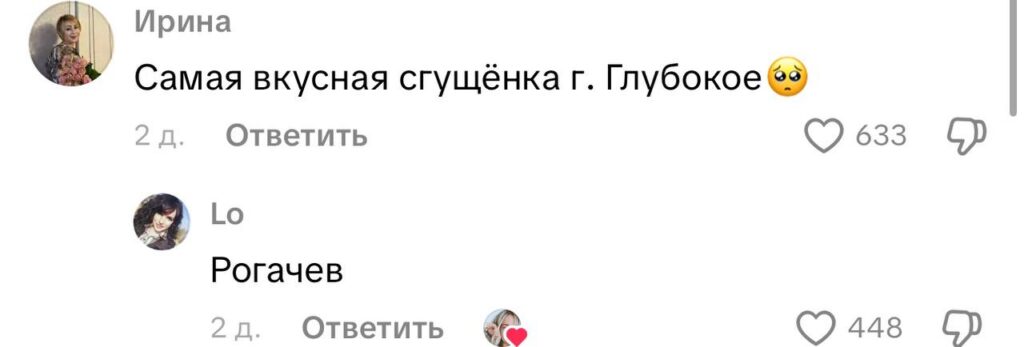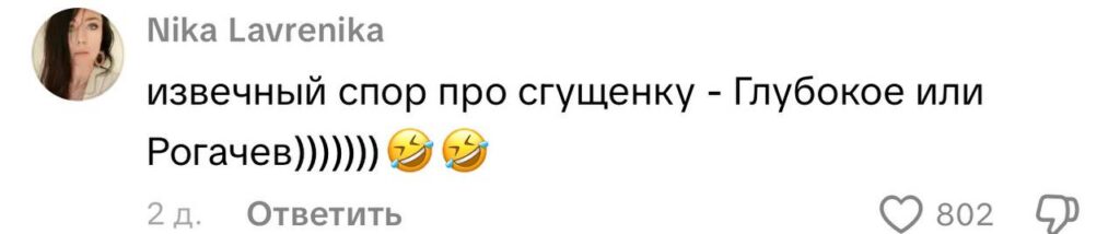 Следующим пунктом в ее корзине оказалась сгущенка. Здесь началась настоящая словесная перепалка среди комментаторов: какая лучше — из Рогачева или Глубокого?
