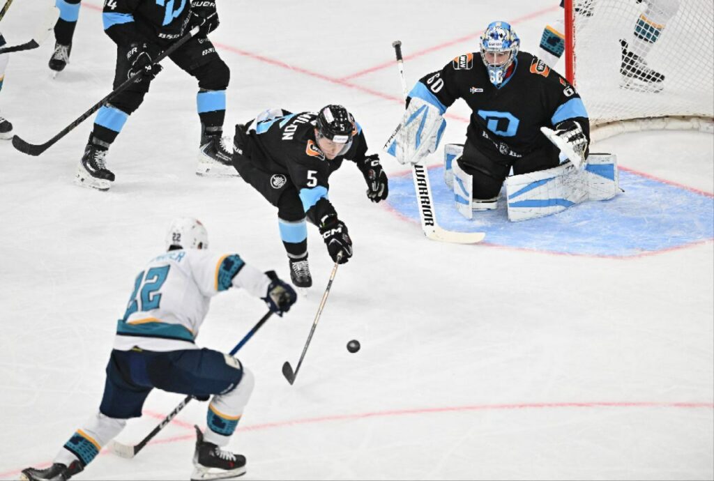 ШАЙБА: 1:0 — 06:51 Энас (Мороз). 1:1 — 27:58 Бикмуллин (Эллис). 2:1 — 29:22 Пышкайло. 3:1 — 38:54 Брук. 3:2 — 49:17 Эллис (Хефенмайер, Бикмуллин, ГБ). 4:2 — 53:55 Лимож (Пинчук, Энас). 5:2 — 59:06 Усов (ПВ).