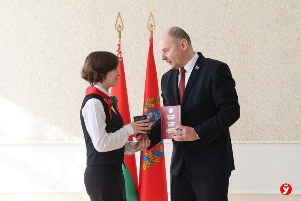 Три паспорта, одна фамилия: тройня Войнич из Клецка и 22 школьника получили паспорта от губернатора
