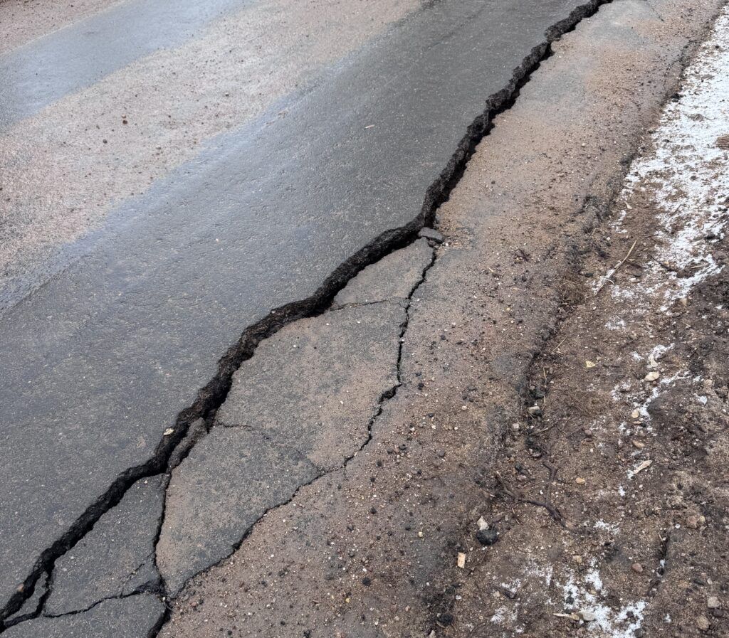 По словам Ирины, в прошлом году коммунальщики завезли на проблемный участок глину, пообещав исправить ситуацию. Однако эффект оказался обратным: после дождей и таяния снега глина превратилась в настоящее «месиво», лишь усугубив проблему. Кроме того, жительница обратила внимание, что на соседних улицах, где осенью уложили новый асфальт, края покрытия не укрепили, из-за чего свежий асфальт уже пошел трещинами.