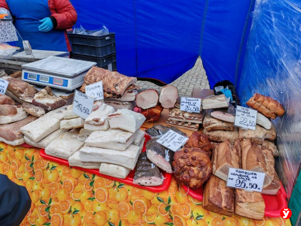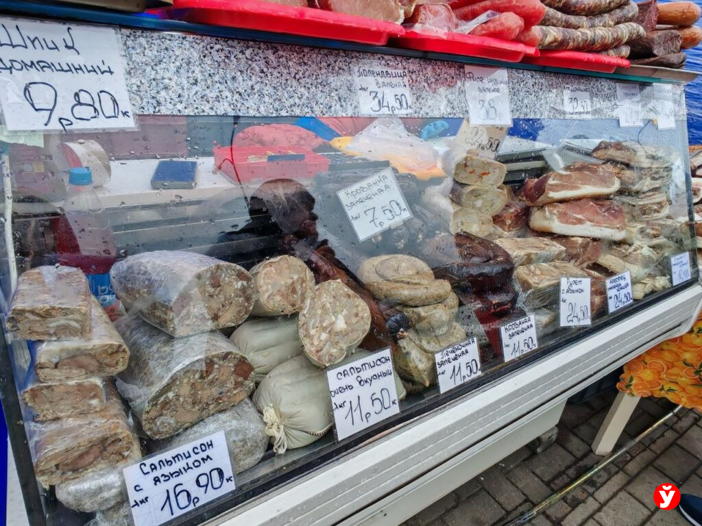 Кому не хочется возиться у плиты в предпраздничный день – берут готовое: копченую грудинку (24,5 рубля за кило), сыровяленую полендвицу (30–38 рублей), корейку (23 рубля), буженину из говядины (47 рублей). Нарасхват сало (22-25 рублей), колбасы. Домашние, «пальцем пиханные» – 25–32 рубля, «кровянка» – 7-11 рублей, ливерка – и вовсе за 9.