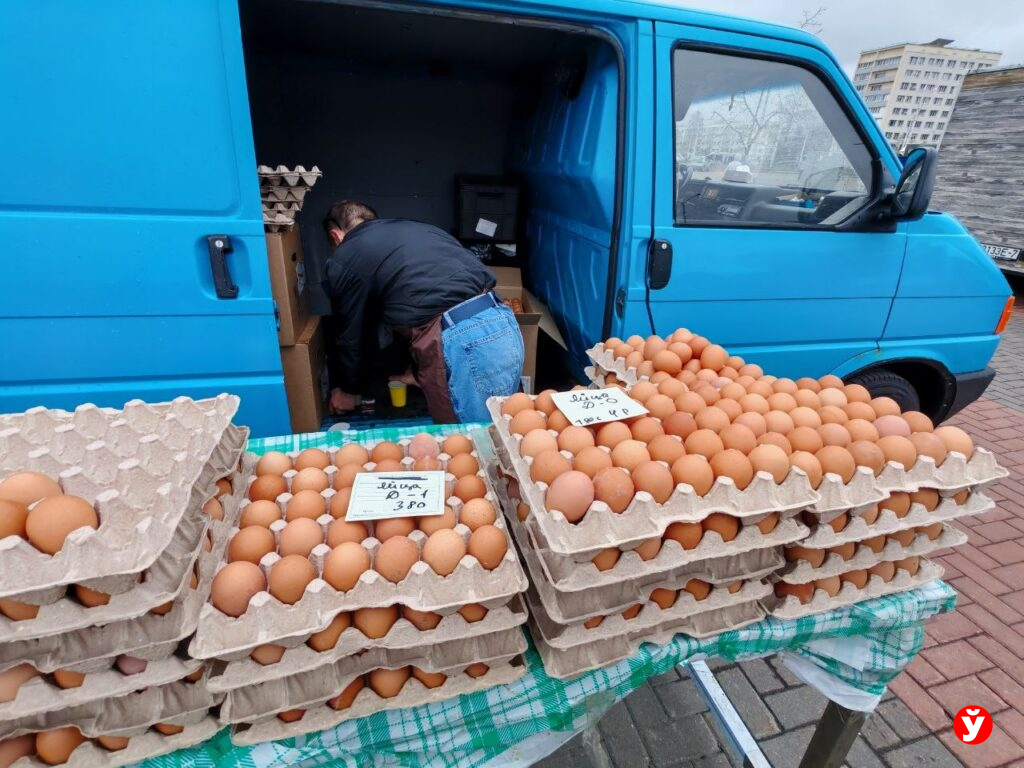 Если бы Миша и хотел поспорить, предложить супруге еще «походить, поискать» – не смог бы. На ярмарке всего одна точка с яйцами: Д-1 отдают за 3,8 рубля, за десяток Д-0 просят уже 4 рубля. Кто-то берет 1-2 лотка, кто-то просит «десять штучек в ваш контейнер». Продавец рад и тем, и другим — бизнес есть бизнес.
