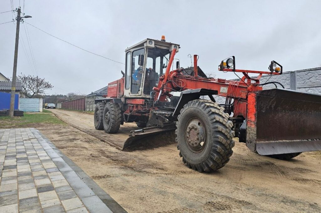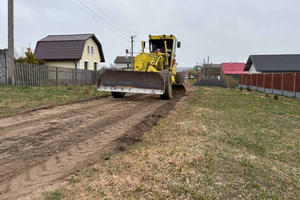 В пристоличье покрытие улучшает ГП «Минрайгорремавтодор». Сегодня специалисты переместились в деревню Самуэлево. На улице Дружной они исправляют профиль с добавлением ПГС. Ушло 180 тонн материала.