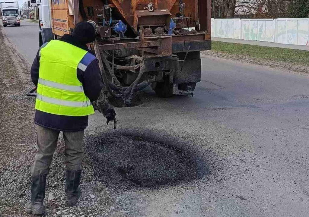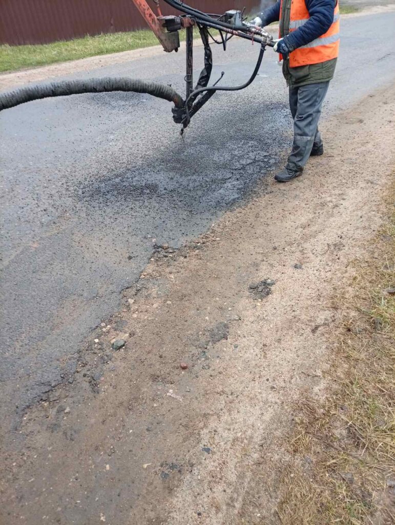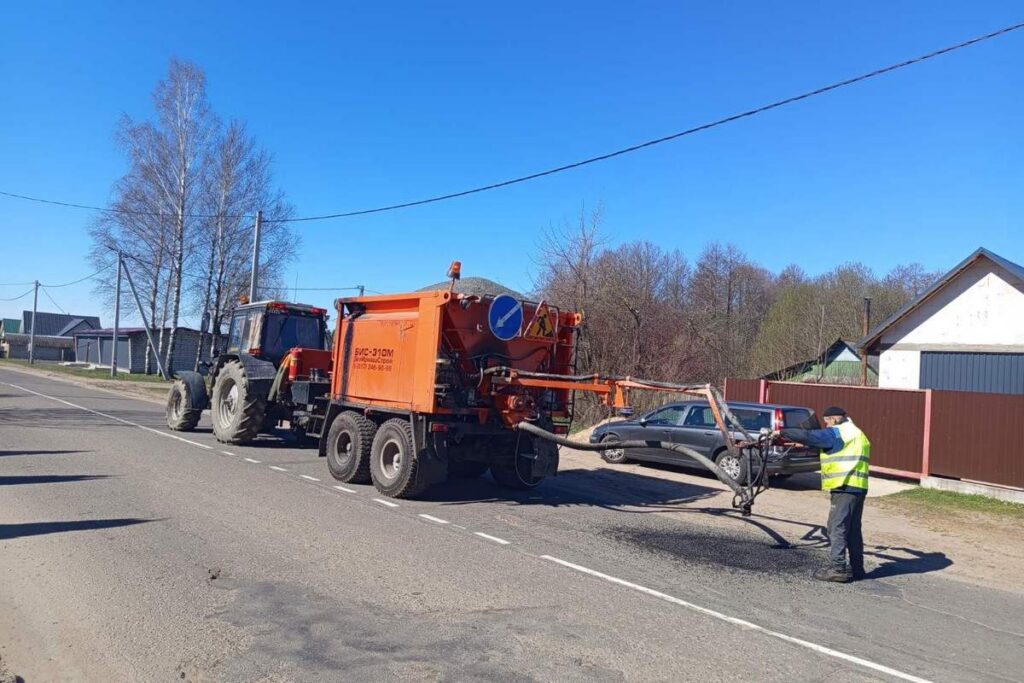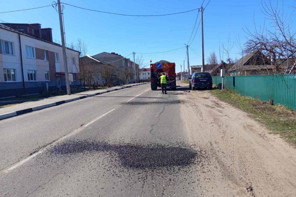 Продолжается весенняя акция по ремонту дорог. Сегодня работники Логойского комхоза осуществляют ямочный ремонт в городском поселке Плещеницы.