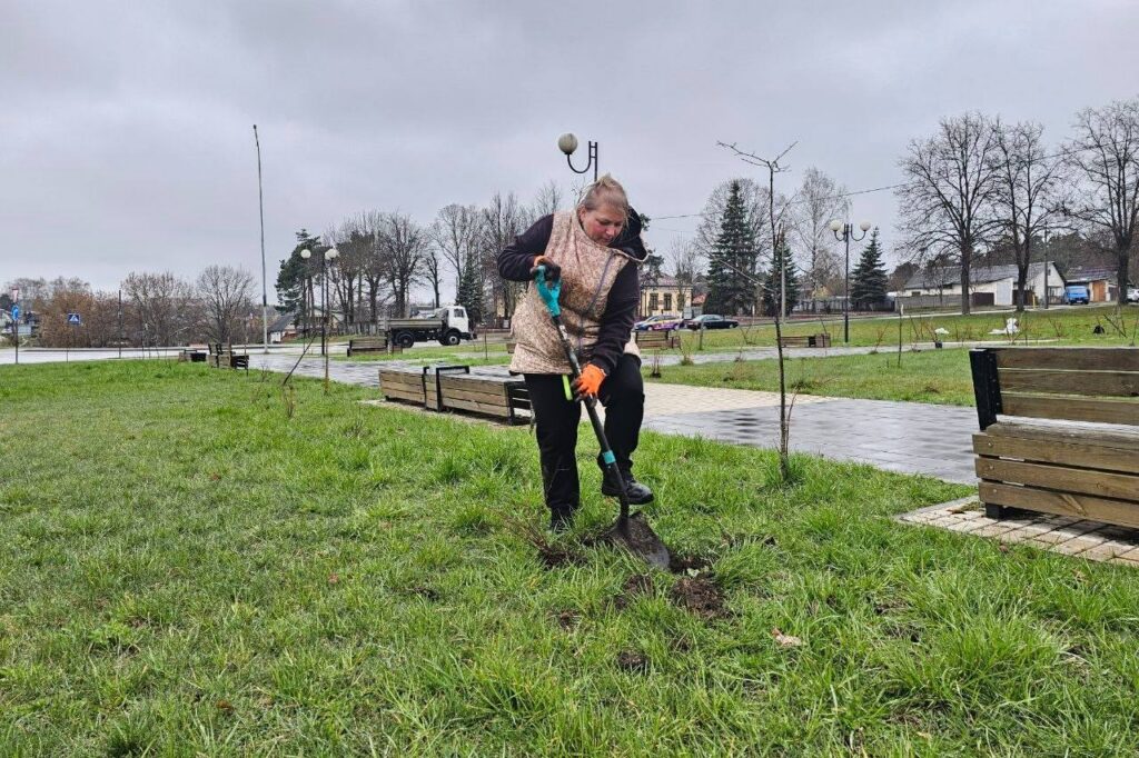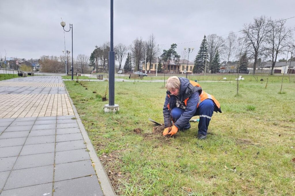 11 апреля вблизи «Парка единства и равных возможностей» в Копыле снова оживлённо: работники ЖКХ вышли на озеленение территории. В земле одна за другой укореняются молодые берёзы и липы, рядом аккуратно высаживают можжевельник и бадан — растения, которые добавят парку цвета и объёма.