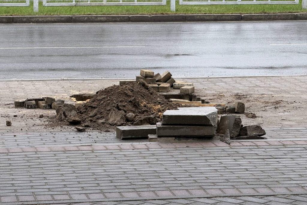 Работы идут вдоль проспекта Мира: напротив аптеки «Веста», магазина «Соседи» и бывших «Культоваров». Специалисты ЖКХ уже подготовили площадки под новую плитку, дальше — аккуратная выкладка и обновление покрытия.