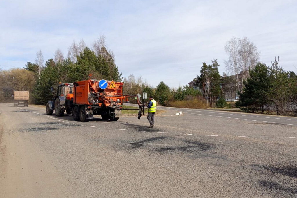 Коммунальщики скрупулезно выявили возникшие после зимы недостатки дорожного полотна главной транспортной артерии поселка, а спецтехника помогла устранить ямочность.