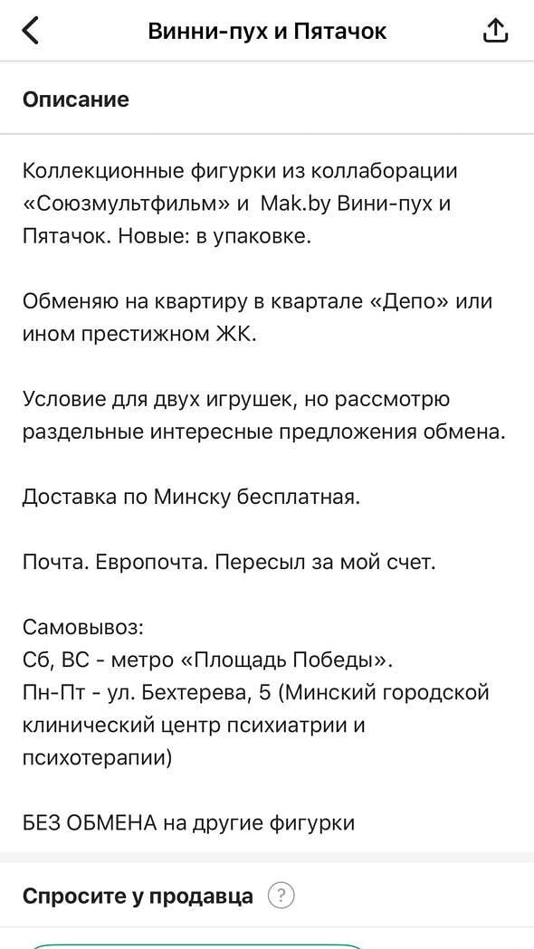 Часто встречается и типичный для таких площадок трюк: в заголовке указана привлекательная цена за всю коллекцию, но при переходе выясняется, что это стоимость каждой фигурки по отдельности.