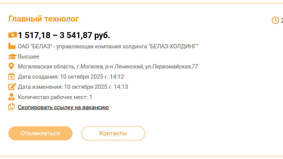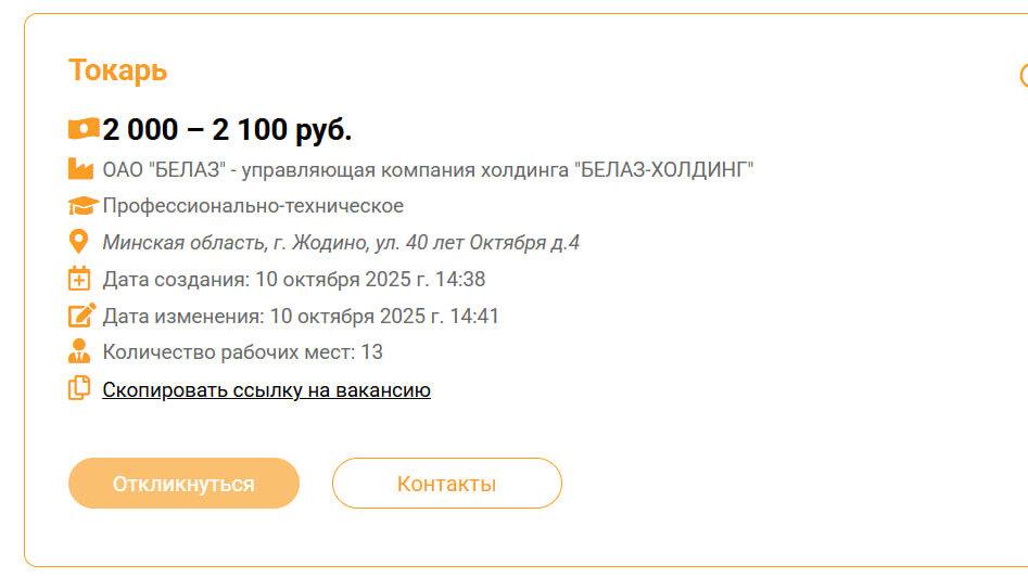 Ведущее машиностроительное предприятие Беларуси — ОАО «БЕЛАЗ» — разместило на сайте Государственной службы занятости обновленный список вакансий. Компания приглашает на работу специалистов самого разного профиля — от рабочих профессий до топ-менеджеров.