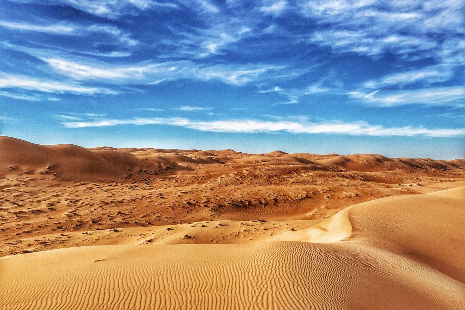 Настоящая арабская пустыня: золотые барханы, караваны верблюдов, закаты, окрашивающие песок в медно-красный цвет. Здесь можно переночевать в бедуинском лагере, покататься на джипе по дюнам или просто насладиться тишиной.