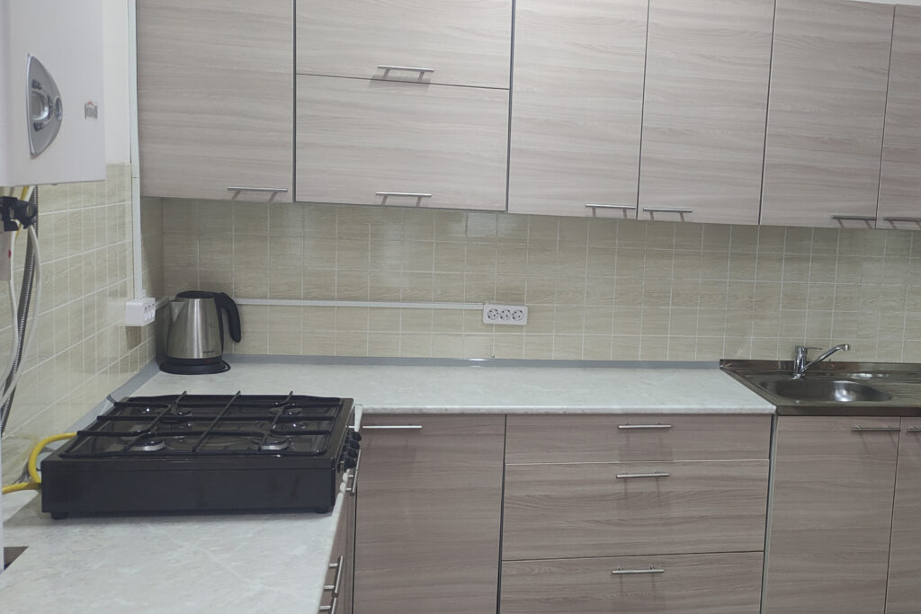 В кухне имеется минимальный набор бытовой техники — электрогазовая плита, чайник и холодильник. Также есть небольшой телевизор и радиоприемник.
