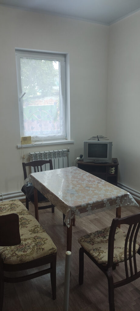 Хозяева дома сдают под аренду две жилые комнаты, кухню и санузел. Мебель есть только в одной комнате — стенка со шкафами, раскладной стол и диван. В другой же комнате выполнена чистовая отделка.