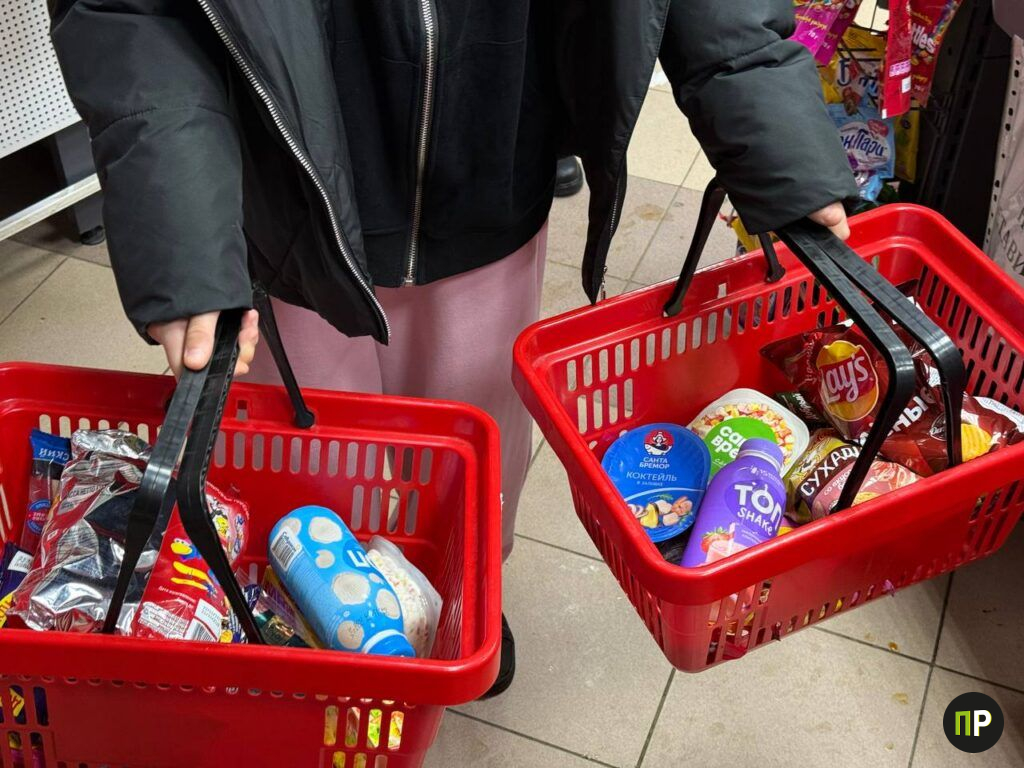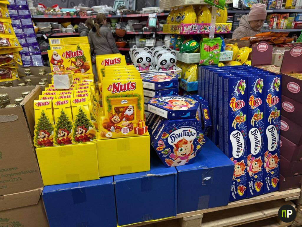 В магазине уже чувствуется приближение зимних праздников: звучит новогодняя музыка, а корзины наполняются подарками и продуктами с праздничной этикеткой.