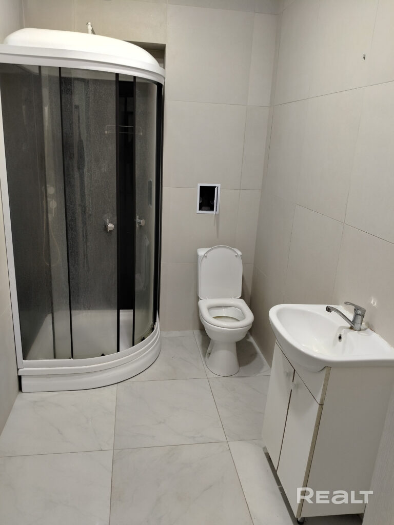 Санузел совмещенный, в ванне стоит душевая кабина.