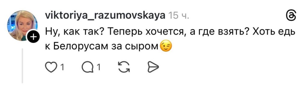 «Ну как так? Теперь хочется, а где взять? Хоть поезжай к белорусам за сыром»