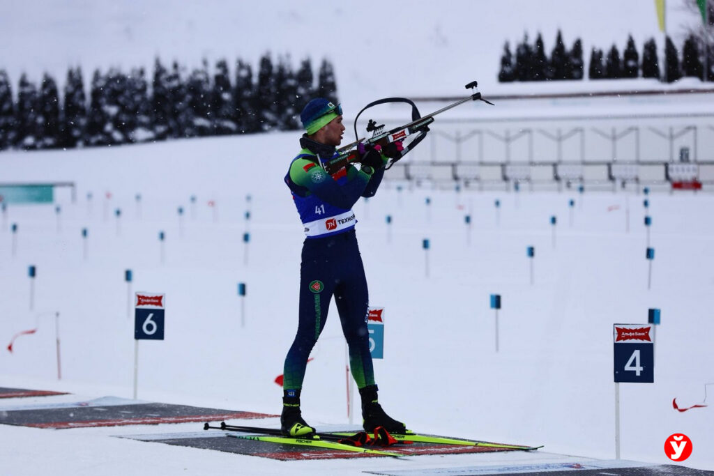 Белорусы начали спокойно: Максим плотно сел за Поварницыным и шел на десятой позиции. Антон Смольский держался 15-м, но сумел «выбрать» три секунды от Халили. На рубеже это сыграло злую шутку: Воробей смазал один раз, но при этом ушел после штрафного круга восьмым. Смольский дважды направил пулю в молоко и откатился на 21-е место. Лазовский нарисовал ноль и переместился на 15-ю строку. Иван Тулатин также не допустил осечек, уйдя 18-м.