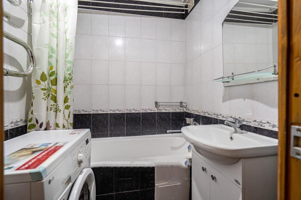 Санузел раздельный. В ванной комнате стоит стиральная машина.