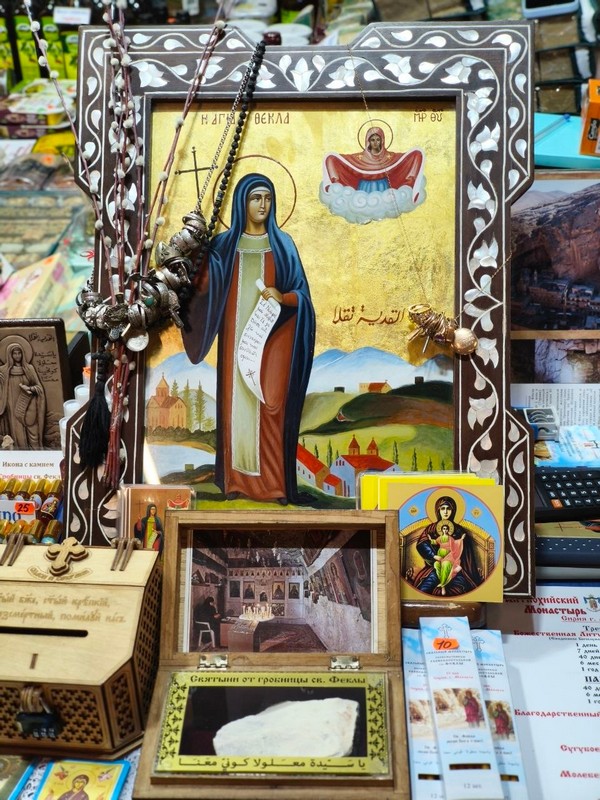 Современная православная женская обитель выросла здесь в 1935 году. А первые монахини стали селиться возле гробницы, где и теперь пребывают мощи ученицы апостола Павла, еще в IV веке.