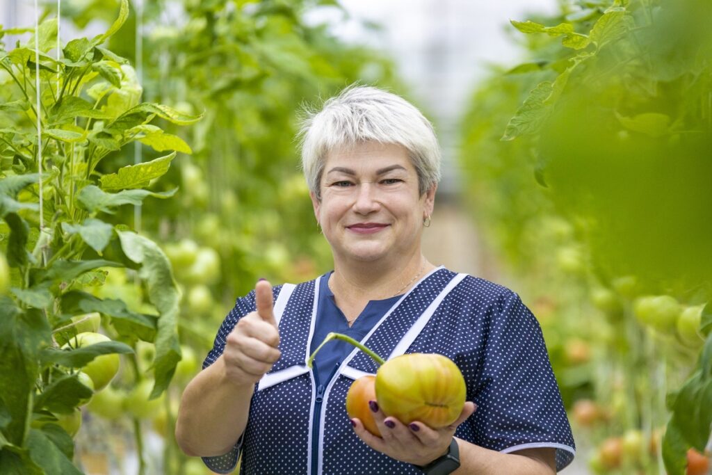 Начальник производства защищенного грунта Надежда Рубан уверенно ориентируется в таких масштабах – более 20 лет посвятила тепличному производству. Рабочий день всегда начинает с обхода: контроль технологических процессов, температурного режима, общение с работниками – нужно постоянно держать руку на пульсе и быть в курсе всех событий.