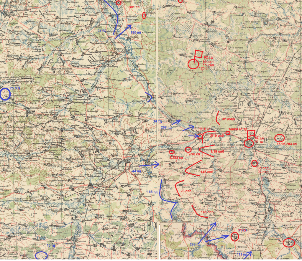 «Тяжелее всего приходилось левофланговой 87-й дивизии, занявшей двумя полками укрепленный район Устилуг, строительство которого, к сожалению, мы так и не успели закончить. На этом направлении наступали пехотная и танковая дивизии противника.
