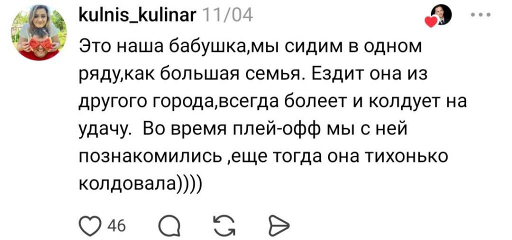 В сезоне 2024/2025 болельщица посетила все домашние матчи плей-офф — и именно тот сезон стал самым успешным в истории клуба.