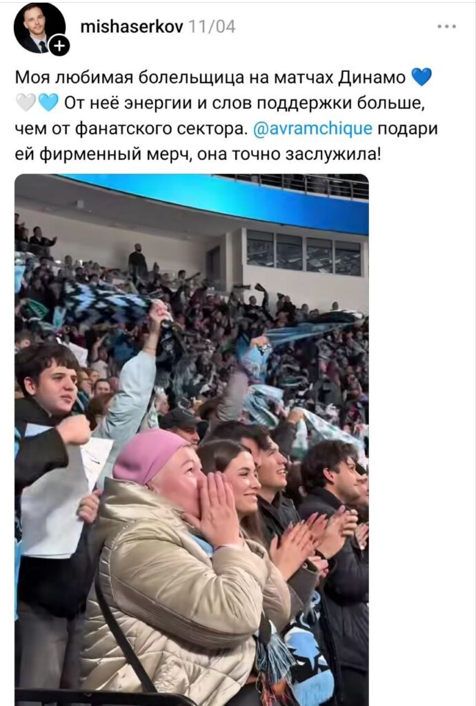 Автор публикации подписал его так: «Моя любимая болельщица Динамо. От ее энергии и слов поддержки больше, чем от всего фанатского сектора». В комментариях ее соседка по трибуне Татьяна добавила: «Это наша бабушка, мы сидим в одном ряду, как большая семья. Ездит она из другого города, всегда болеет и колдует на удачу. Во время плей-офф мы с ней познакомились, еще тогда она тихонько колдовала». Именно Татьяна помогла нам выйти на связь с этой удивительной женщиной, чтобы узнать историю ее любви к хоккею.