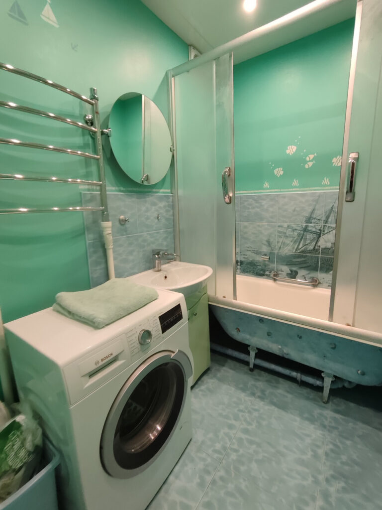 Санузел раздельный. В ванной имеются стиральная машина, сушка для полотенец, раздвижная дверца и поручень для удобства жильцов в ванне. Туалет оснащен гигиеническим душем.