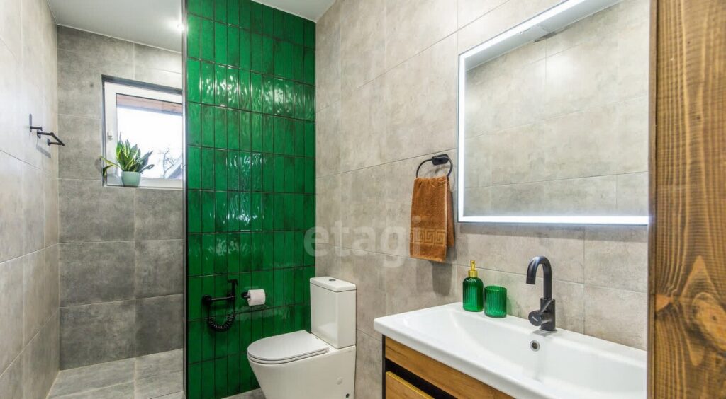Отопление в доме осуществляется с помощью газового котла, дополненного системой водяных теплых полов, которая включает 12 контуров.