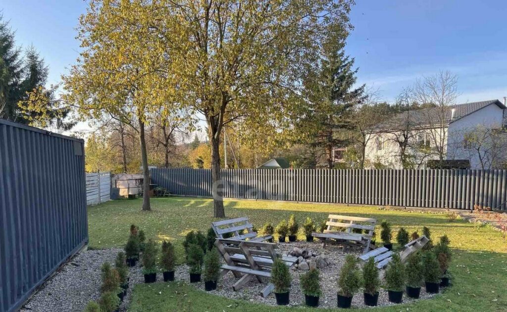 Участок площадью 8 соток находится в частной собственности, он ровный и полностью благоустроен. На территории организована специальная зона для костров. Также здесь расположен гараж и площадка, рассчитанная на два парковочных места.