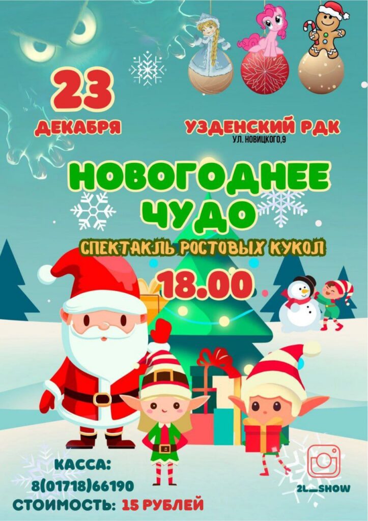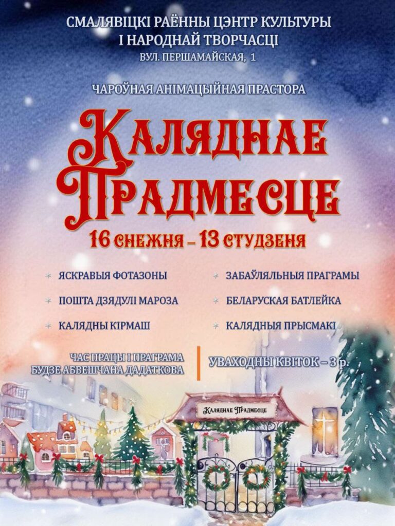 В Пуховичах с 15 декабря по 7 января — выставка новогодних игрушек, изготовленных работниками предприятий, 7 января — Рождественский концерт, а 13 января — Рождественский бал. В Смолевичах с 16 декабря по 14 января — «Каляднага прадмесця».