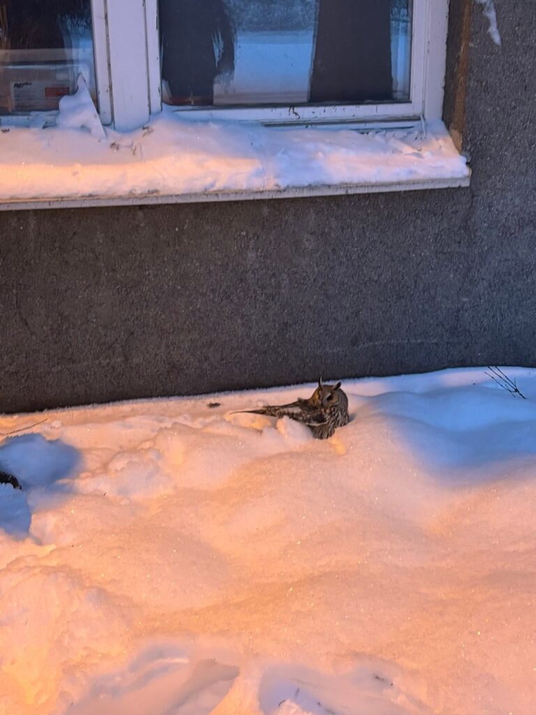В Минске из сугробов спасли обессилевшую ушастую сову