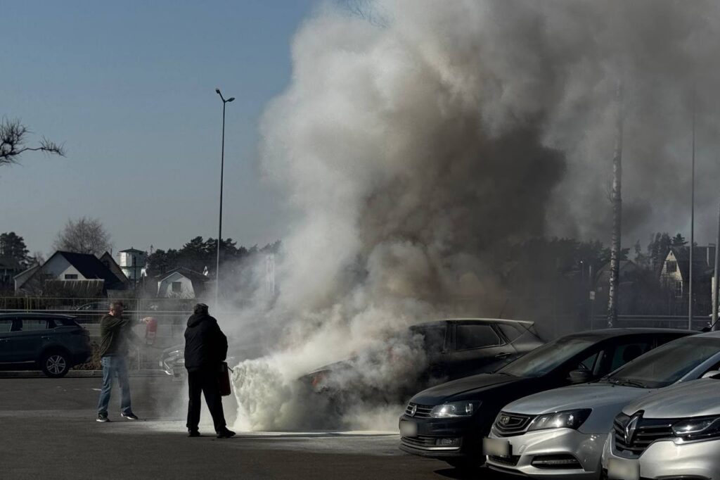 У ТЦ «Валерьяново» вспыхнул автомобиль – прохожие бросились тушить машину огнетушителями