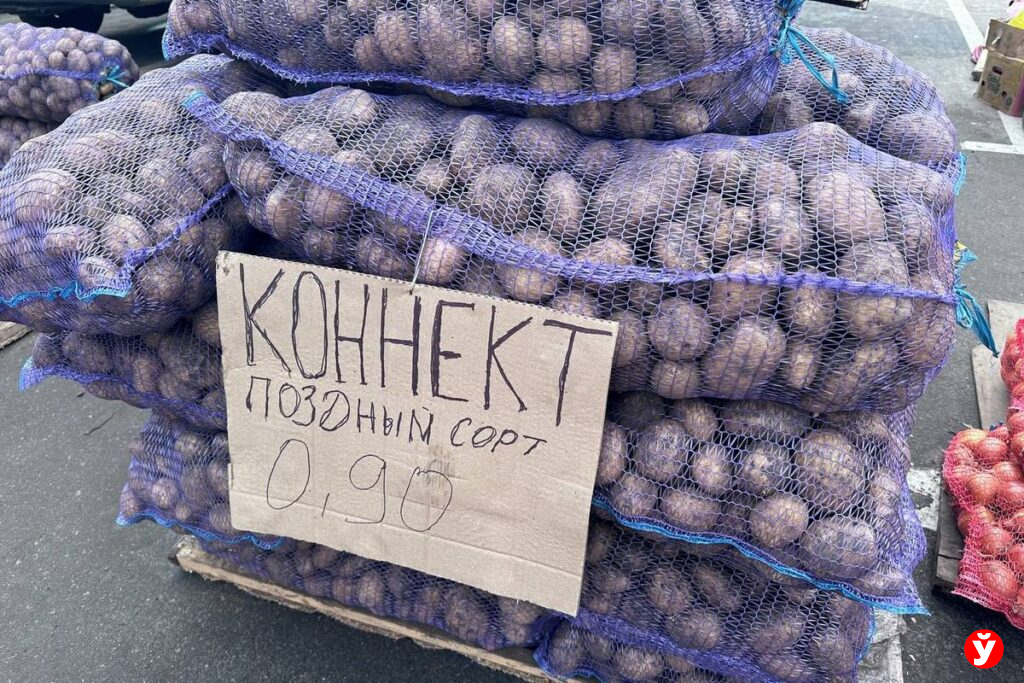 Выяснили: картофель — от 1 до 1,20 руб./кг (у разных продавцов). У фермеров из Могилева — сетки картошки-сеянки по 25 руб. за сетку (~35 кг). Они торговали сортами «Уладар», «Дубрава», «Коломба». У местных продавцов — в воскресенье в продаже были сорта «Ред Леди» и «Королева Анна», «Беларосса», «Гала».