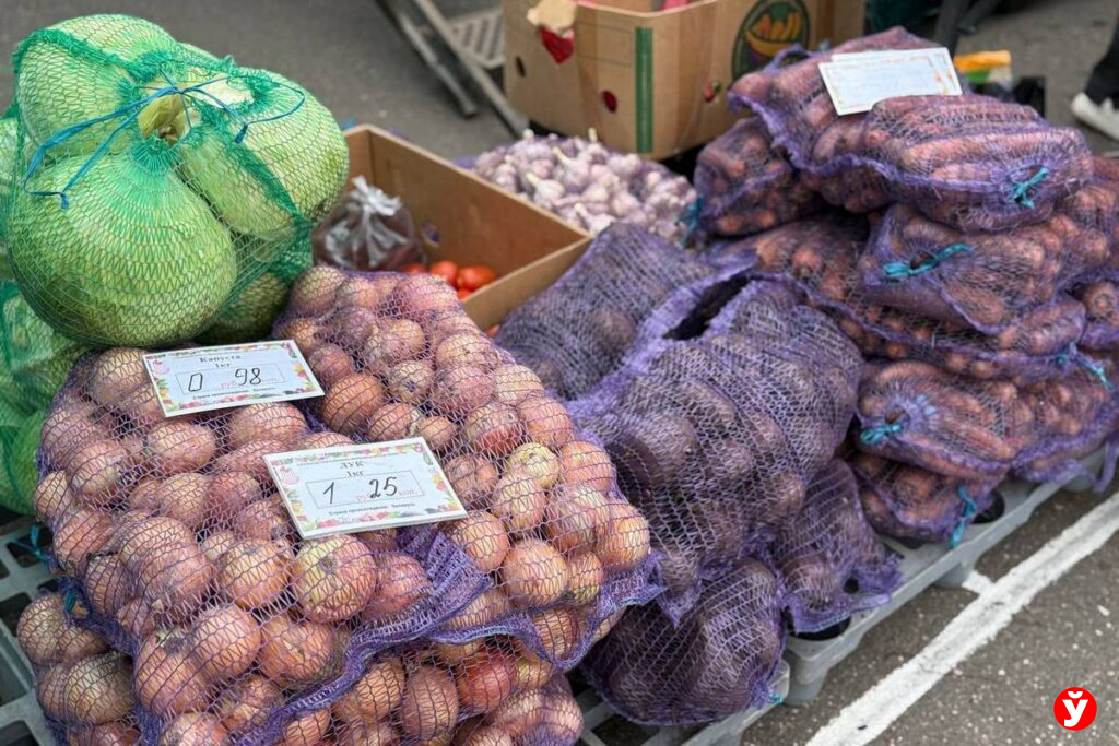 Местные жители продолжают активно закупать картофель. Выбор предлагает почти каждый продавец. На прилавках нашли сорта «Мия», «Королева Анна», «Винета», «Гала» и другие. Цены на овощи доходят до 1,5 рубля у различных торговых точек. Самые бюджетные варианты предлагают местные сельскохозяйственные предприятия — 1 рубль за килограмм. Однако посетитель ярмарки поделился, что приезжают представители хозяйств не каждое воскресенье.