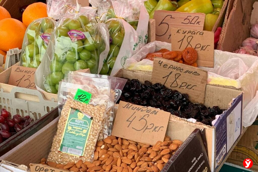 У частных продавцов можно найти и более экзотические фрукты и ягоды. На прилавках расположились мандарины, гранаты, манго, лимоны, персики и абрикосы, арбузы и дыни.